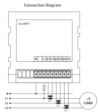 DJ-A96T - Digital three-phase, built-in digital current meter AC, X/5, indirect measurement Digital current indicator, three-phase, panel meters TENSE