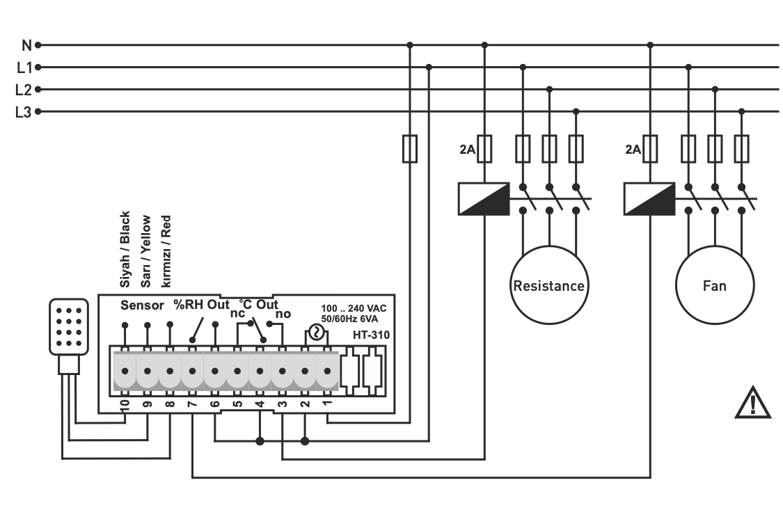 %RH Output - Relay (NO), 250VAC, 2A, resistive load