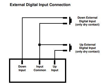 - User control: Up/down via front panel keys or up/down via digital inputs.