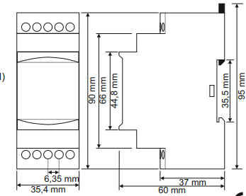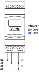 The frequency meter can be mounted on a standard 35 mm DIN rail.