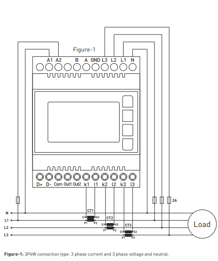 Typically this network analyzer is used with current transformers - 60/5 75/5 100/5 150/5 200/5 250/5 300/5 400/5 500/5 600/5 800/5 1000/5 1500/5 or similar. If you want to connect the analyzer to ModBus, we will send you a "registration table" with ModBus addresses on request.