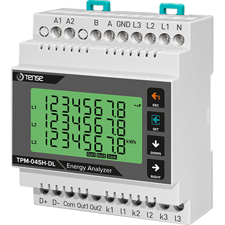 3-phase network analyzer / Network analyzer / Network analyzer - multi-function digital panel meter, current, voltage, frequency and total power display, with relay output, RS485 ModBus RTU - TPM-04SHDL manufacturer TENSE (Turkey) panel meters.