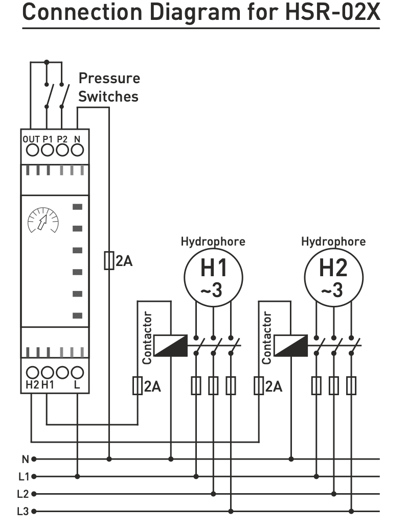 The hydrophore sequential relays are used to control the number of pressure boosters to be activated based on pressure, and to ensure that the pressure boosters operate simultaneously.