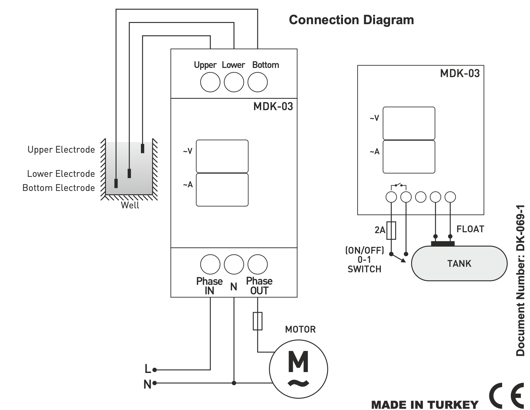 Drilling hole level meter, well level meter, tank level meter / Single-phase protection relay - submersible pump controller, pump protection, pump actuator relay MDK-03 (TENSE)