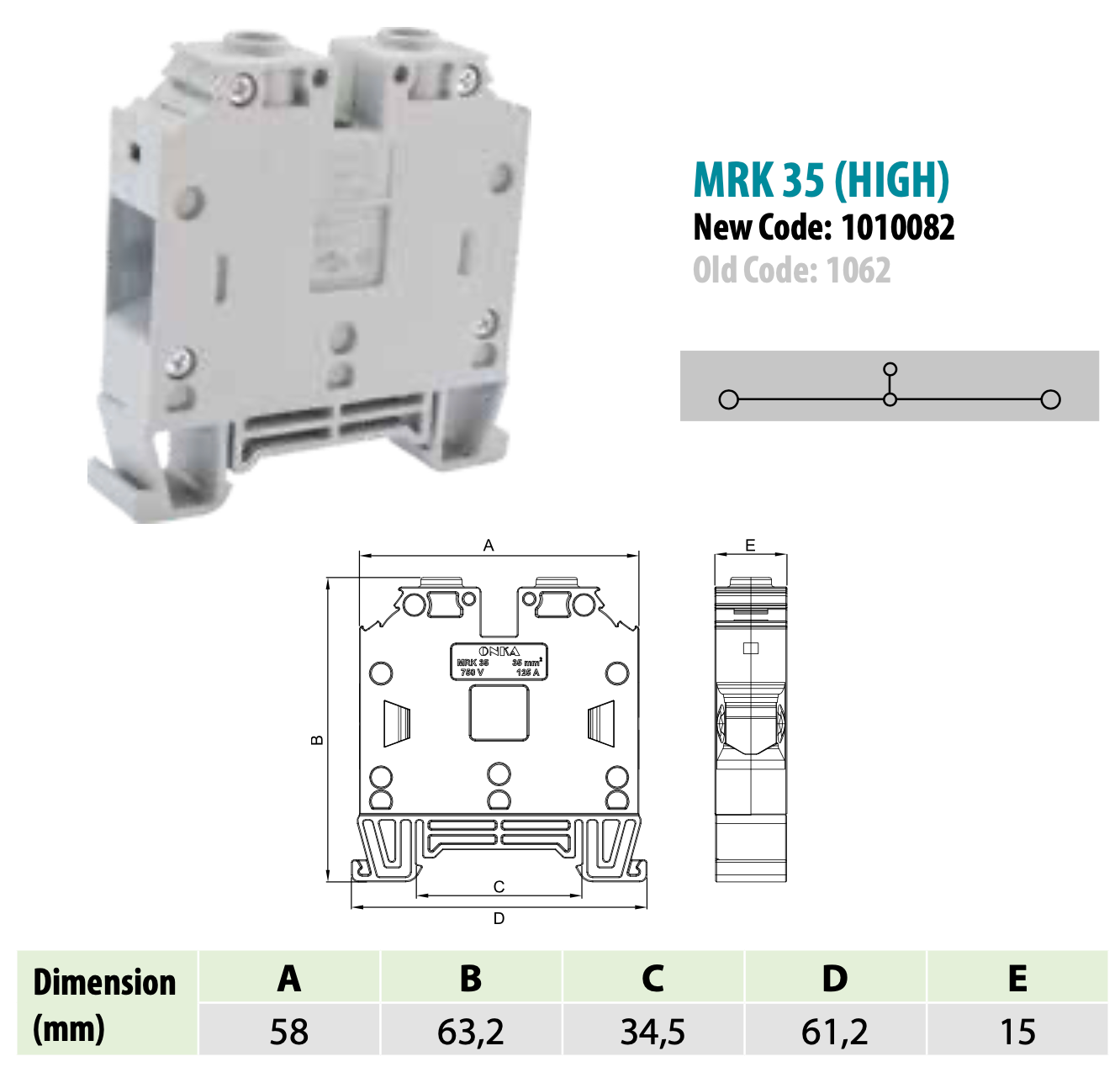 Terminal block / DIN rail connector 2-wire, gray, ONKA, made in Turkey