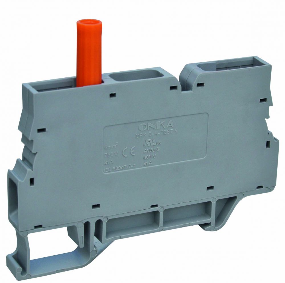 Measuring terminal with test connector, threaded rail connector / DIN rail connector 2-wire gray, ONKA, made in Turkey