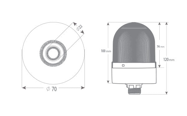Flashing ø70 nut connector indicator buoy with buzzing, 40-250V AC/DC., BLUE, 20CM EXT. tube
