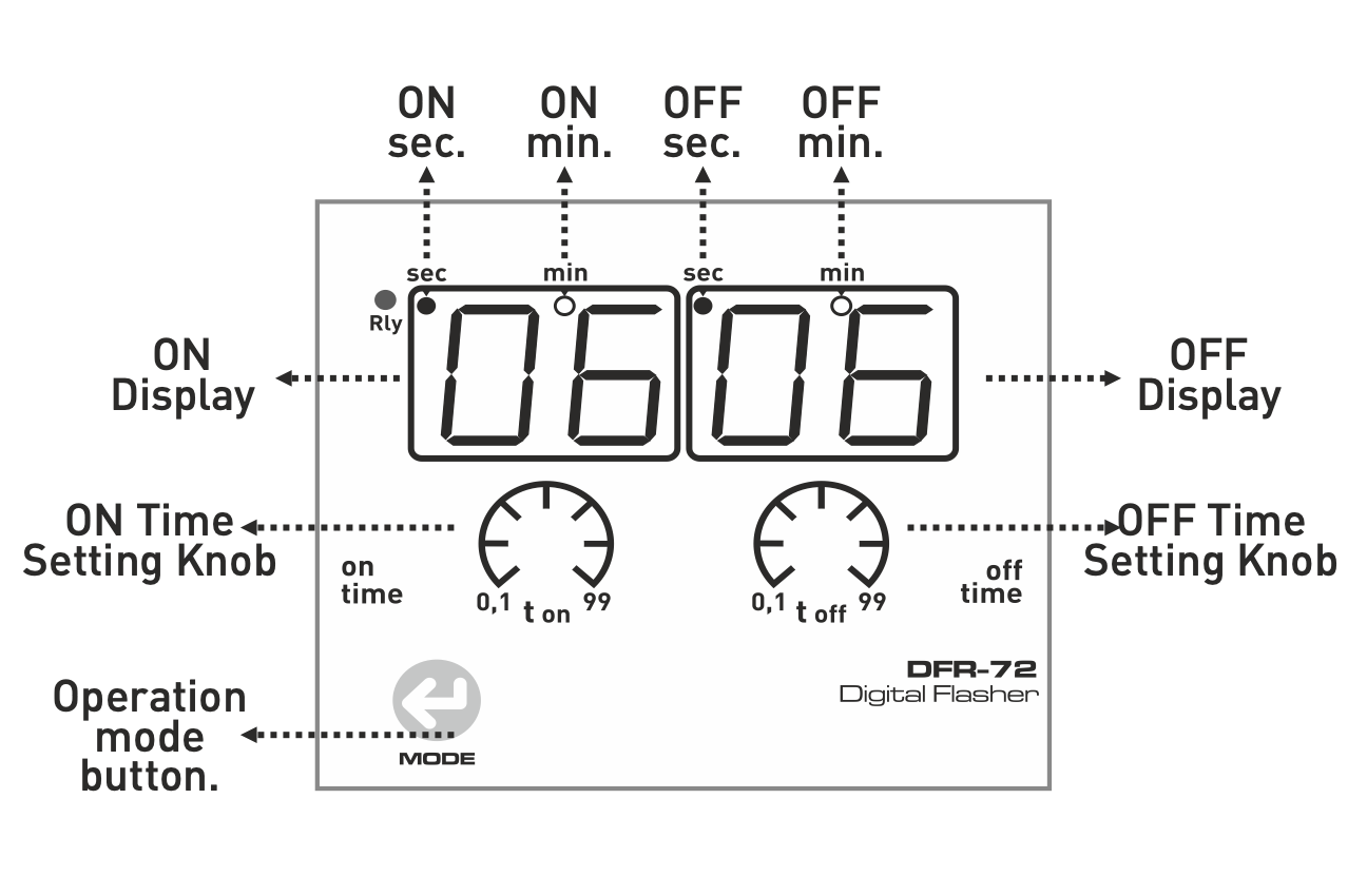 Aszimmetrikus ciklikus ciklikus váltó / időciklus relé 2×2 LED kijelző panelre/ajtóra szerelhető 230VAC - Villogás az impulzus kezdetén , villogás a szünet kezdetén ciklikus ciklikus váltó - szimmetrikus / aszimmetrikus ciklus