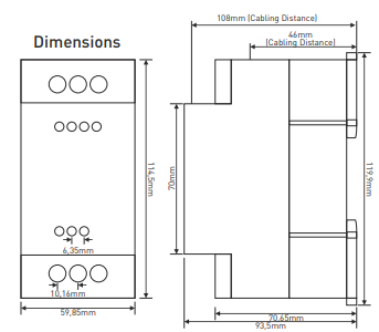 • Kábelkeresztmetszet: 2,5 mm² (reléérintkezők) / 6 mm² (bemeneti és kimeneti mérési terhelések)